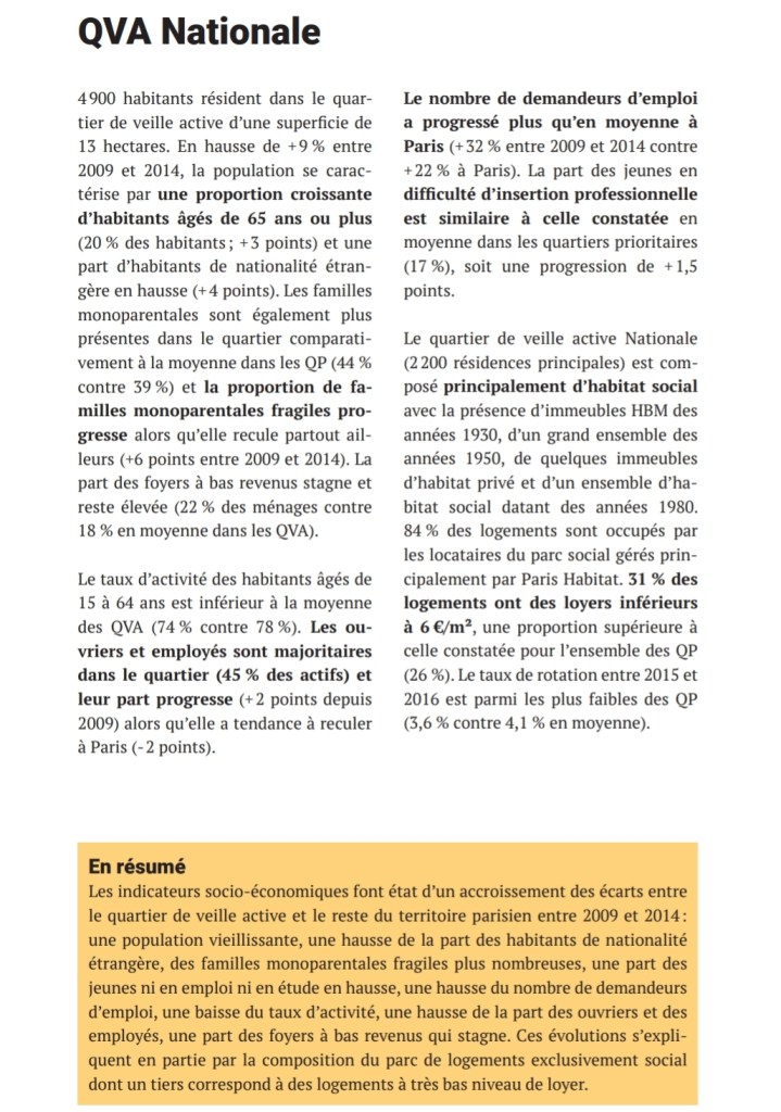 Le Quartier Nationale (Dunois et Clisson) est l’un des quartiers les plus problématiques (QPV) de Paris, composé de nombreuses tours et bâtiments HLM, ainsi que quelques bâtiments HBM.