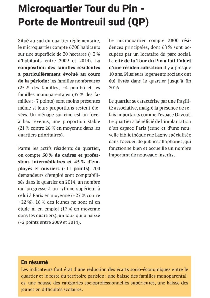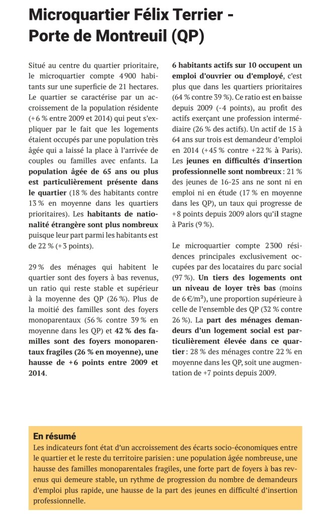 Le secteur Portes du Vingtième (Fougères – Dulaure – Python – Saint Blaise – Félix Terrier – Paganini) fait parti des 8 quartiers aux situations les plus défavorisées de Paris.