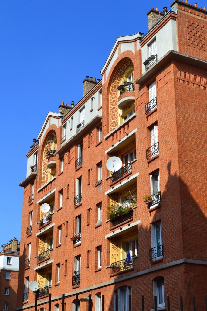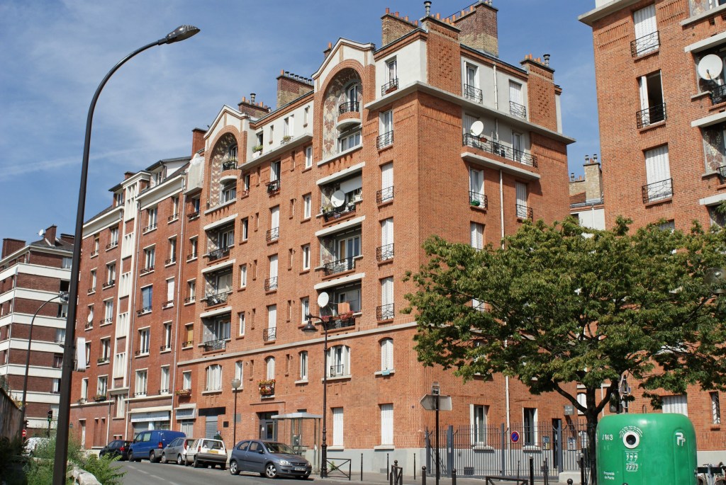 La construction est retardée à cause de la guerre de 14-18 et l’ensemble n’est livré qu’en 1924. L’aspect un peu « caserne » des logements est alors égayé grâce à la conception aux derniers étages de loggias en double hauteur décorées de céramiques de couleur.