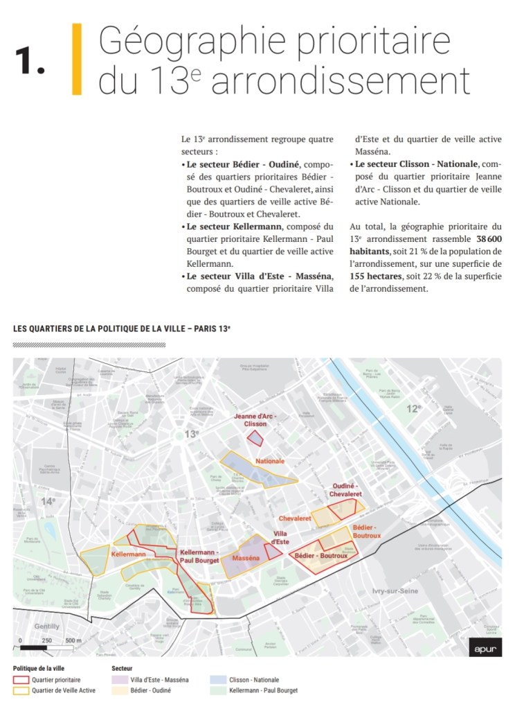 Nombre d’habitants de l’ensemble du quartier La Brillat – Paul Bourget : 12557 habitants (chiffre : Mairie 13ème)