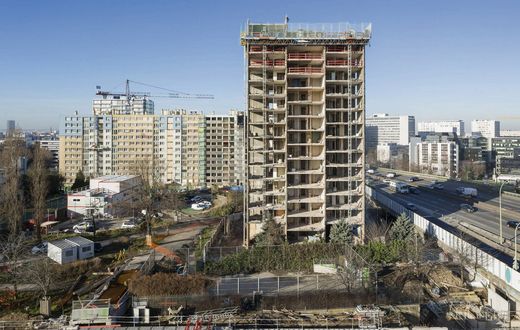 Implantée à proximité immédiate du Périphérique, à la hauteur de la sortie de la Porte de Saint-Ouen, l’édifice comptait 96 logements sociaux.