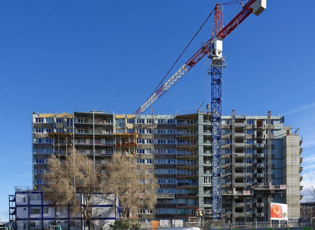 En effet dans le cadre du projet de rénovation de la Porte Pouchet, un tiers de la barre -le plus proche du périphérique- a été détruit, les deux-tiers restants sont en pleine restructuration et une extension au sud de l’immeuble est en construction.