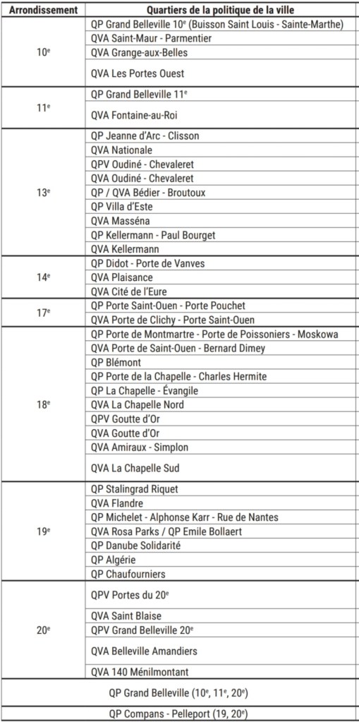 En ce qui concerne les QVA, quand on se réfère à la liste du gouvernement (disponible sur le site : https://sig.ville.gouv.fr), on en trouve que deux sur Paris contrairement à la cartographie et au tableau de l’APUR. Qui croire ?