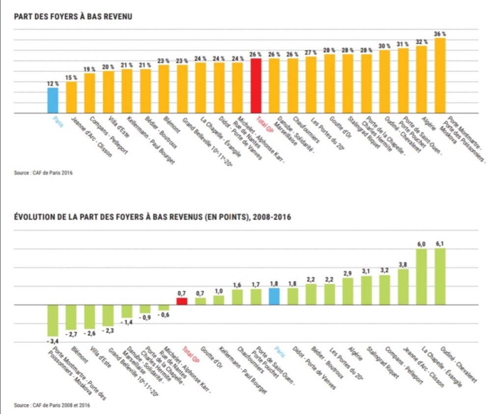 Les 8 quartiers aux situations les plus défavorisées de Paris :