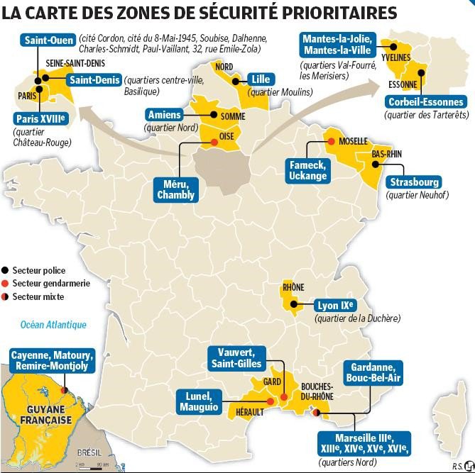 A Paris, trois ZSP ont été créées dans les quartiers : Barbès / Château-Rouge / Goutte d’Or (18e arrondissement), Curial-Cambrai / Stalingrad (19e arrondissement) et Orteaux / Saint-Blaise / Réunion (20e arrondissement).