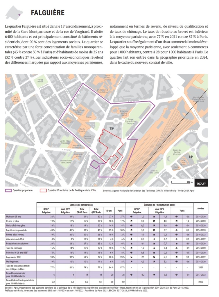 C’était un quartier très dur dans les années 90, puis ça s’est calmé, et depuis quelques années ça commence à redevenir très sensible. Falguière fait parti des deux quartiers du 15ème à être classé en QPV en 2024.