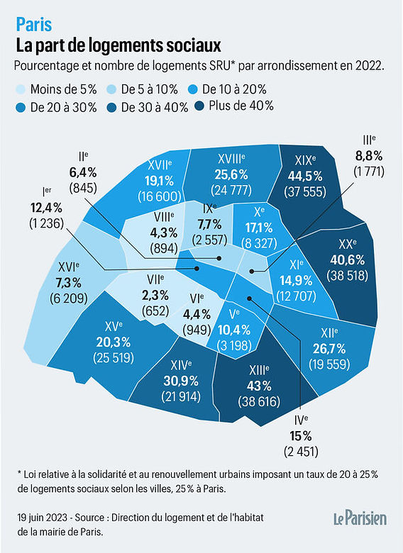 42,4% de logements sociaux dans le 19ème contre 2,1% dans le 7ème
